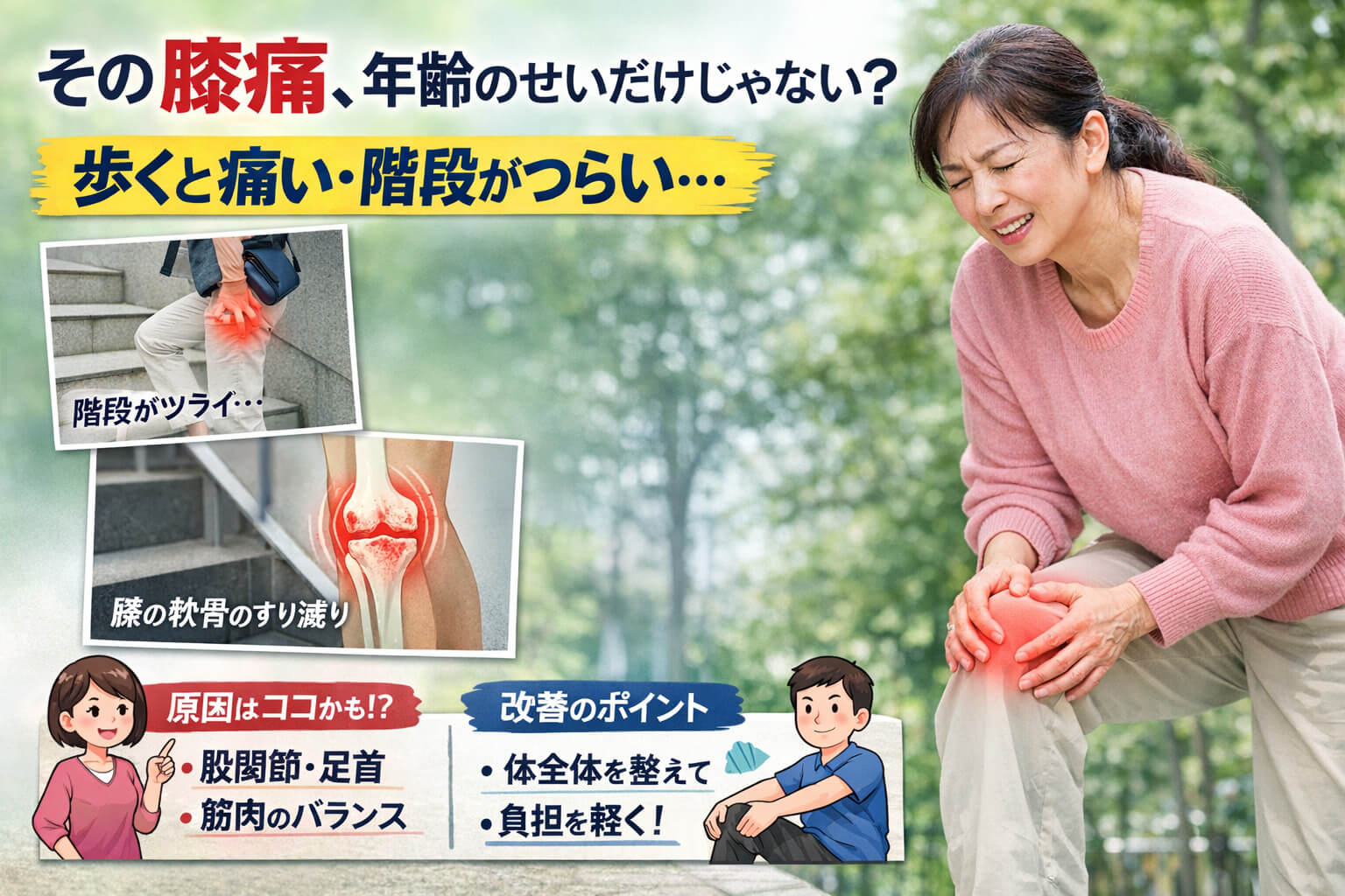 膝痛は、単に膝だけの問題ではなく、