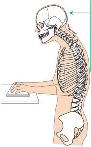 この姿勢が続くと、首や肩の筋肉はずっと頭を支え続けることになります。