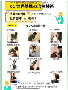 病院であれば「首」「腰」「背骨」などの専門領域に焦点を当てすぎる傾向があり、全体として何が問題なのがわかりずらいが、きりんさんはトータルなアプローチを示してくれる。
